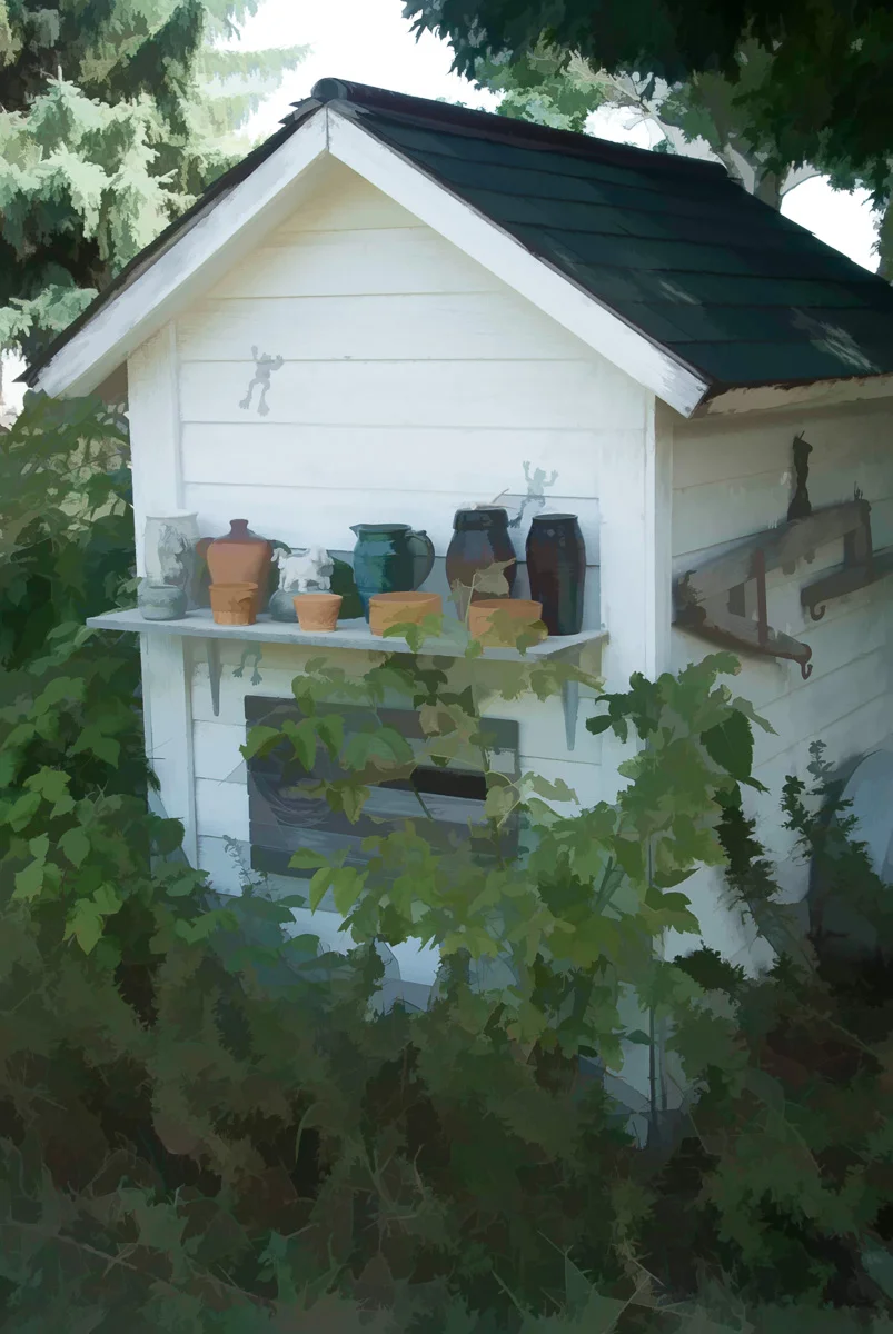 I guess I should have asked Painting or Photograph but I thought Painting or Picture sounded better. Actually this is a photographed processed to look more like a picture. Something different I know, but it is good to change things up now and then. Do you like the little frog logos on the wall of the shed?